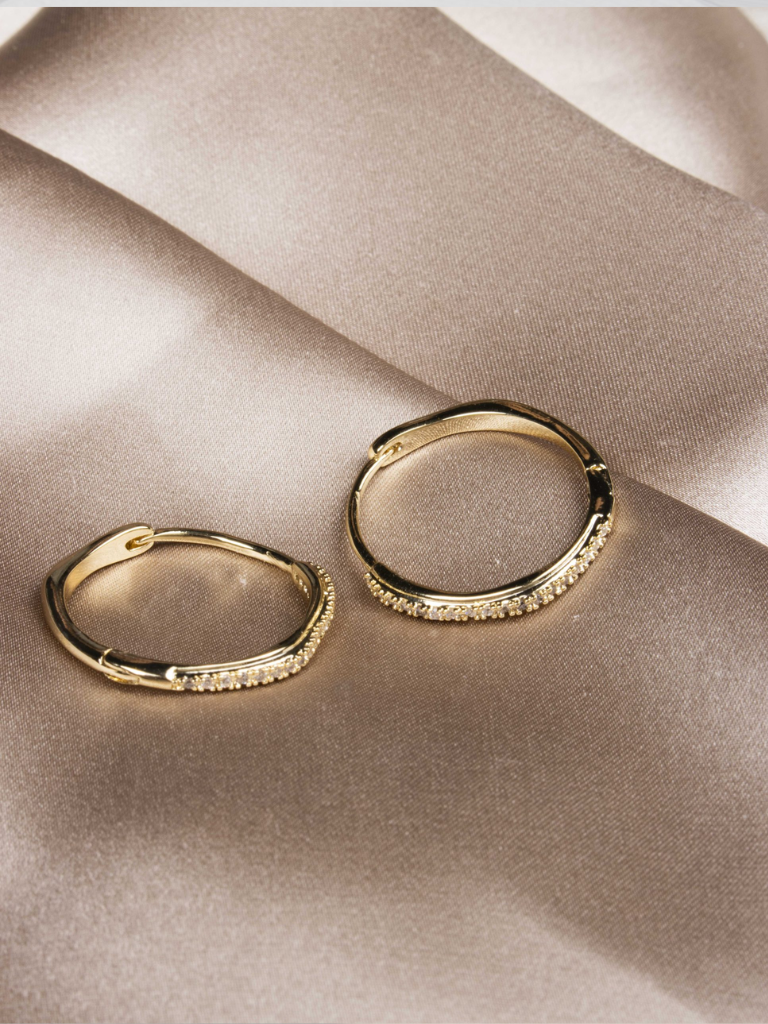 Medium twist hoop earrings with diamante detailing made from brass then 14k gold plated. Length of hoop is 4cm. Earrings come beautifully packaged in Olia jewellery packaging.