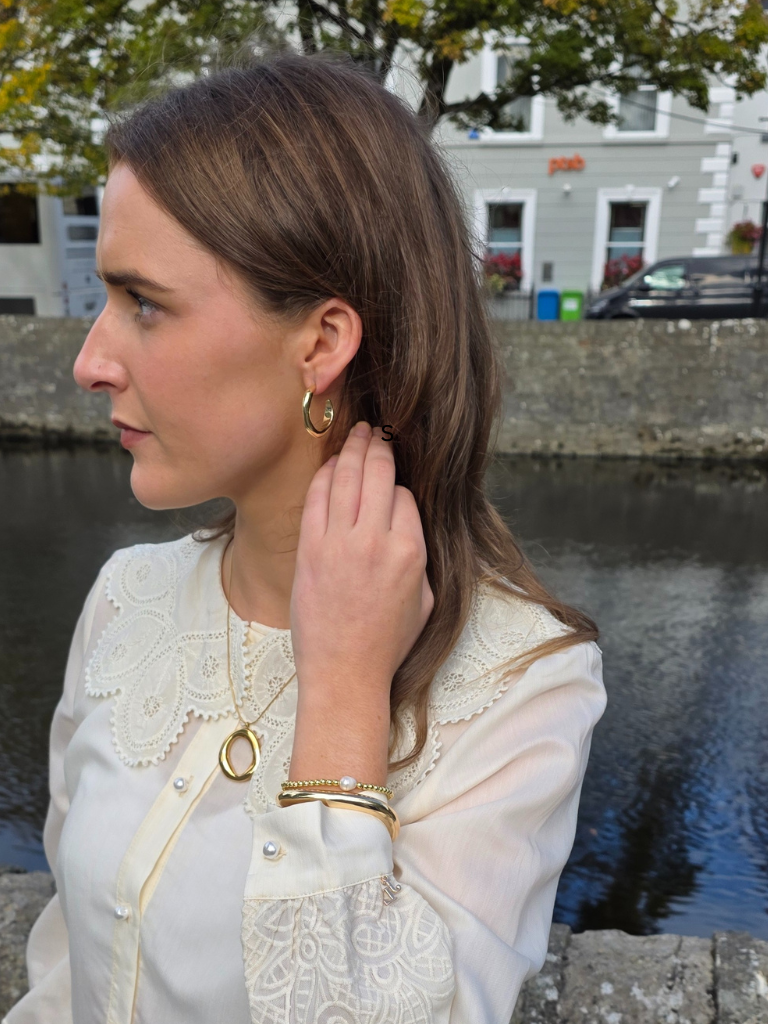 Our Effie irregular hoop earrings are the perfect pairing to any outfit. A bold but subtle look these earrings will elevate your look all year round.