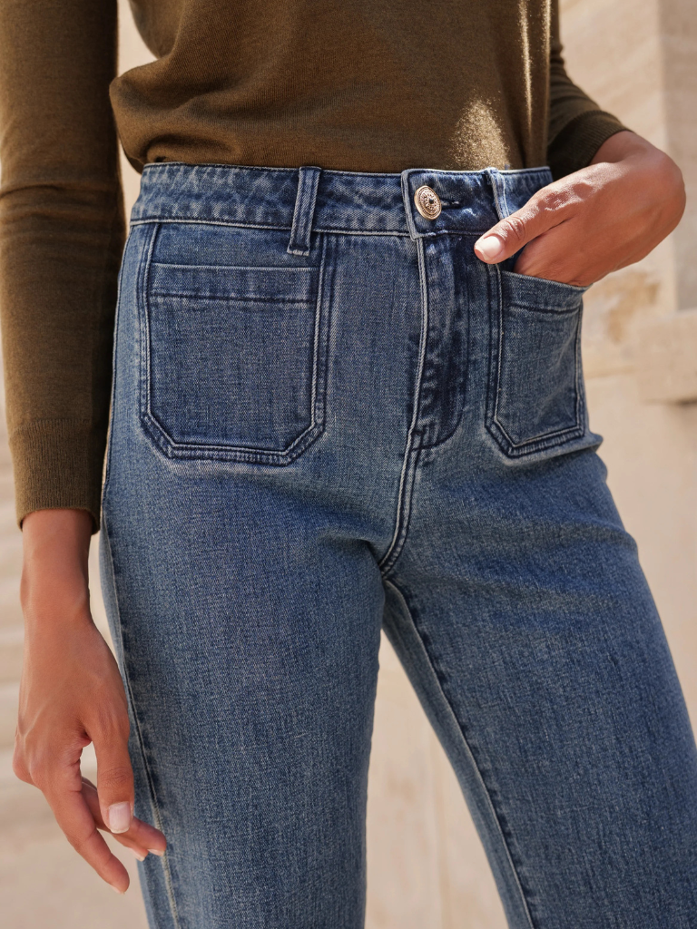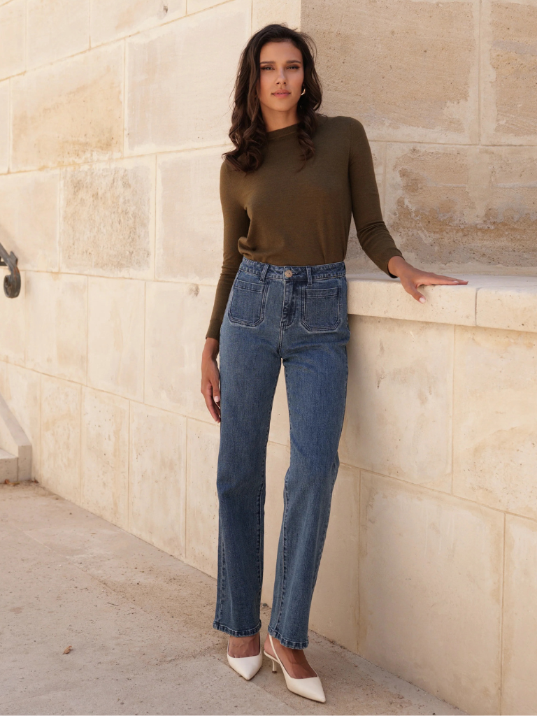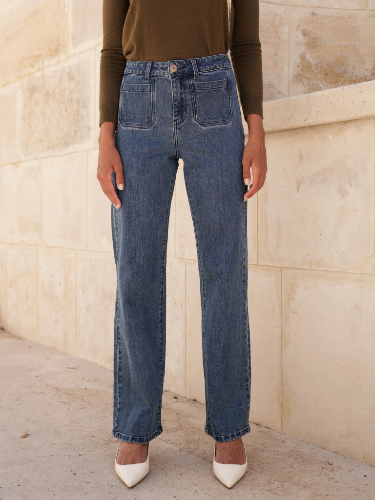 The Felix jeans are designed with precise details that give them all their charm, their patch pockets for a romantic vintage touch, as well as their beautiful gold jewel button that gives the model a touch of shine. No longer choose between comfort and elegance: choose our Felix jeans.