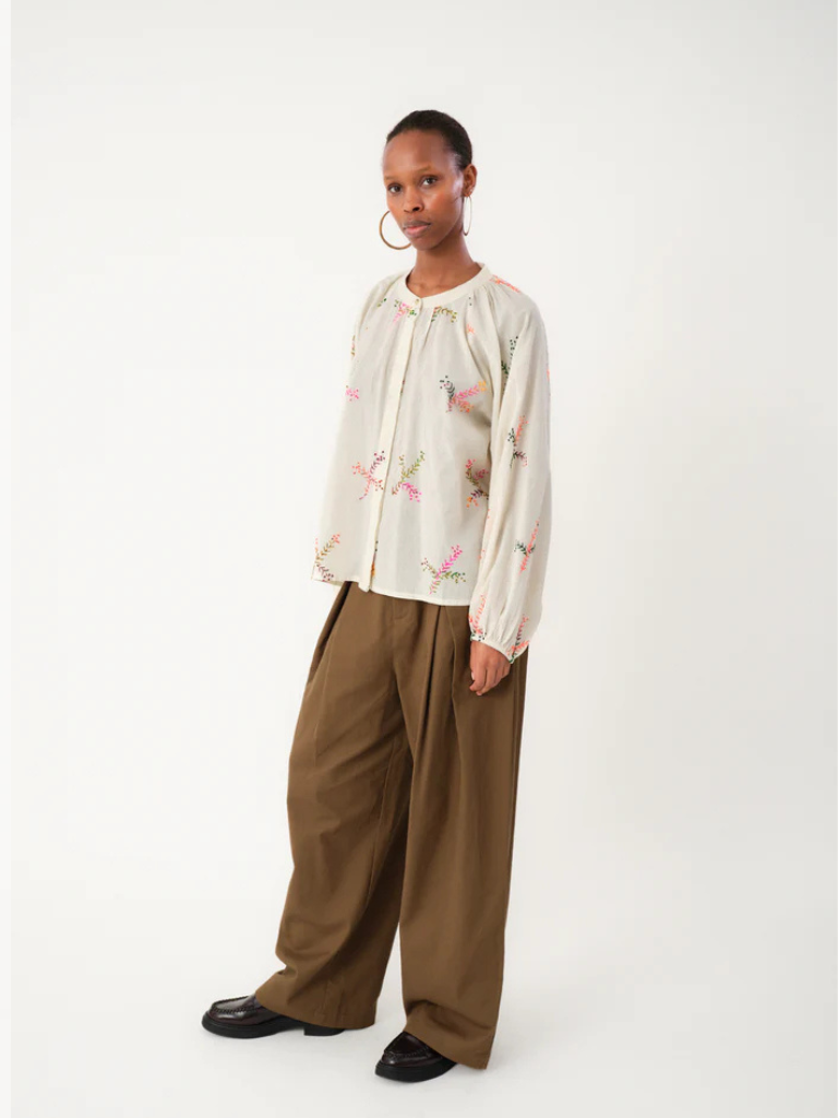 The HaileyLL shirt is a feminine and colorful style with delicate details. It’s made from light and soft cotton with an embroidered pattern in warm tones, creating a handcrafted and exclusive look. The relaxed fit with gentle gathers gives it a beautiful silhouette and effortless drape.