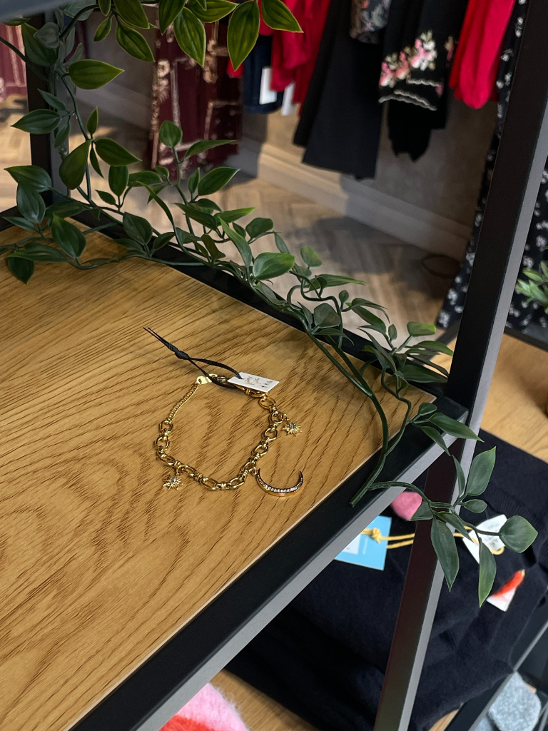 Fun Charm-style bracelet featuring moon and star designs. Perfect alone, or matched with our Shannon necklace.